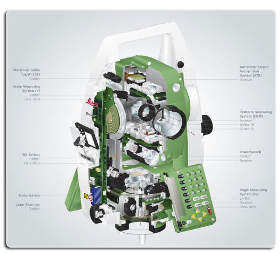 全站儀幾乎可以用在所有的測量領(lǐng)域。電子全站儀由電源部分、測角系統(tǒng)、測距系統(tǒng)、數(shù)據(jù)處理部分、通訊接口、及顯示屏、鍵盤等組成。
