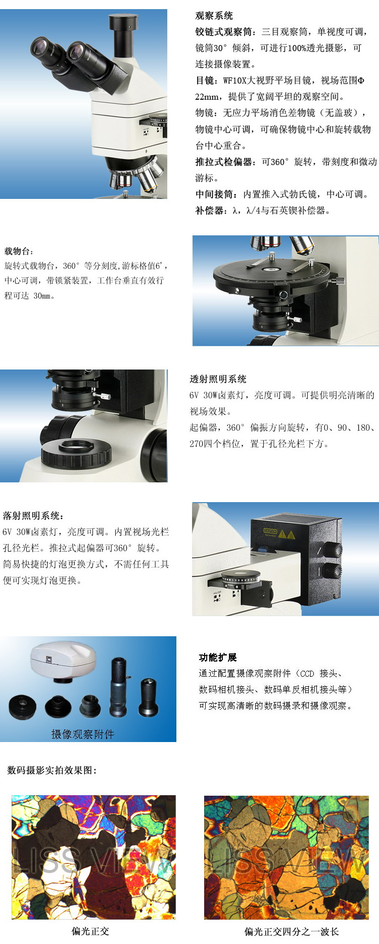 落射照明系統(tǒng) | 6V30W鹵素燈,亮度可調(diào) |