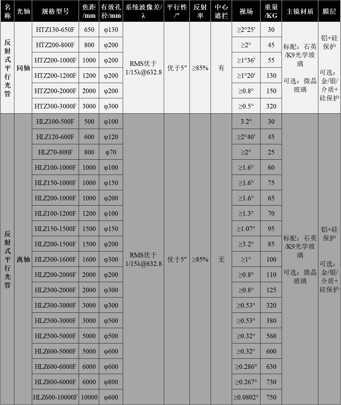 離軸反射式平行光管 | 1 | 套 | HLZ100-1000F型 |