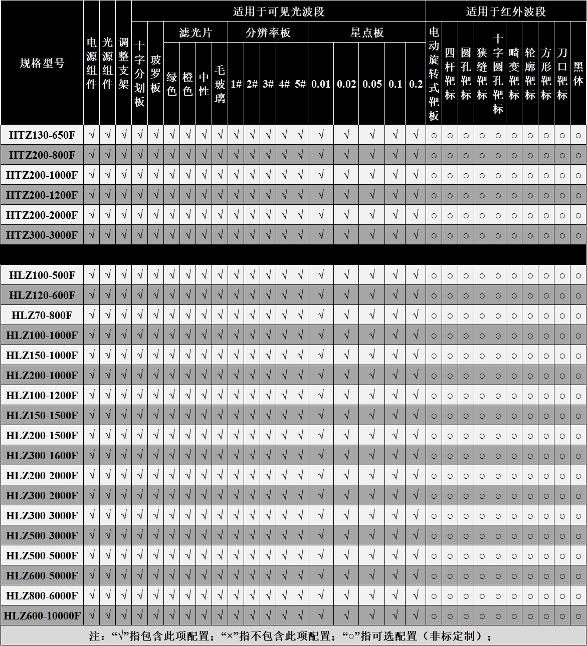 帶框分劃板 (適用于可見光波段) | 12 | 件 | 帶框十字分劃板1件; 分辨率板(1#-5#)各1件; 玻羅板1件; 星點板(0.1/0.2/0.01/0.02/0.05)各1件; |