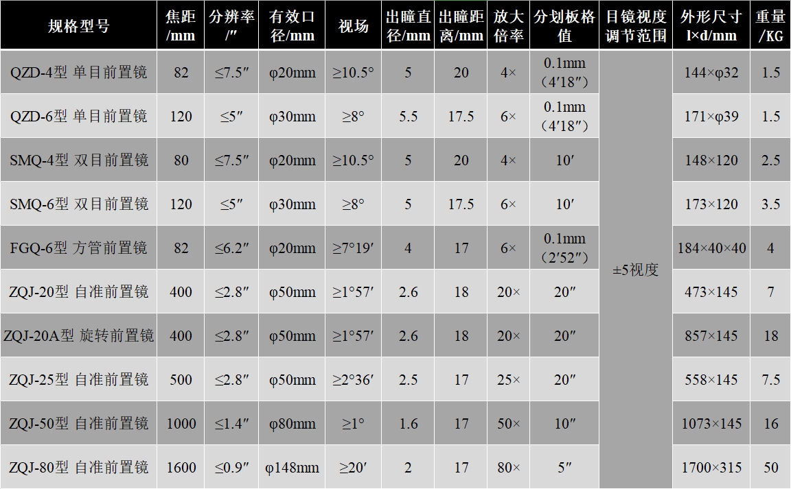 FGQ-6型 6×方管前置鏡,是一種具有單分劃板式目鏡的儀器,在光學(xué)儀器生產(chǎn)裝校工作中,既能作瞄準用,又能測量用。主要用來測量導(dǎo)軌的直線性、精密平板的平面度、基面之間的垂直度和平行度、精密軸系的晃動誤差等;同時還可以用來測量各種棱鏡的角度差和平鏡的平行差以及測量檢驗各種棱鏡、平鏡與裝配基面之間的角度誤差等。該儀器被廣泛用于機械制造業(yè)、計量室、精密儀器制造業(yè)、光學(xué)實驗室、光學(xué)冷加工以及光學(xué)儀器的裝配、調(diào)整、檢驗等領(lǐng)域。