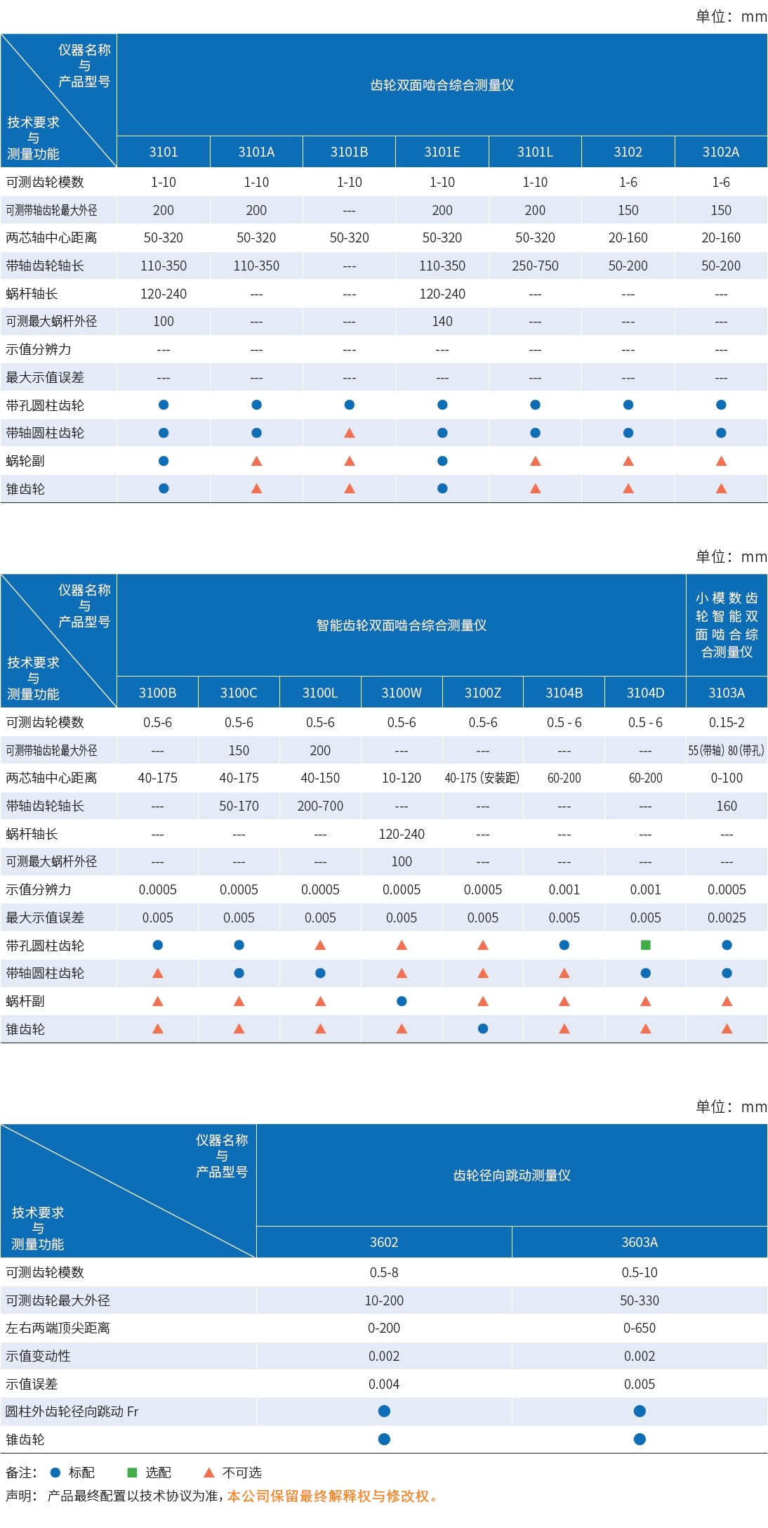 ●  測(cè)量力及測(cè)量方向可調(diào),并配有多種尺寸的測(cè)頭,適應(yīng)不同類型的齒輪。