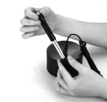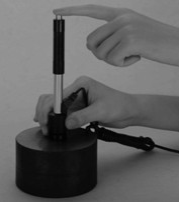 按動(dòng)沖擊裝置上部的釋放按鈕,進(jìn)行測量。此時(shí)要求試樣、沖擊裝置、操作者均穩(wěn)定,并且作用力方向應(yīng)通過沖擊裝置軸線。