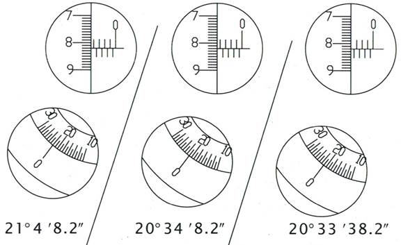 圖4 細(xì)分多齒分度臺讀數(shù)示例圖