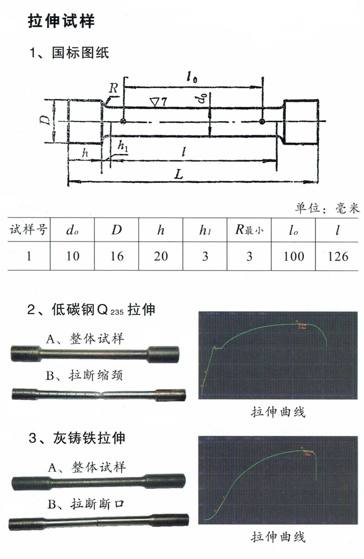 標(biāo)準(zhǔn)拉伸試樣,低碳鋼,鑄鐵