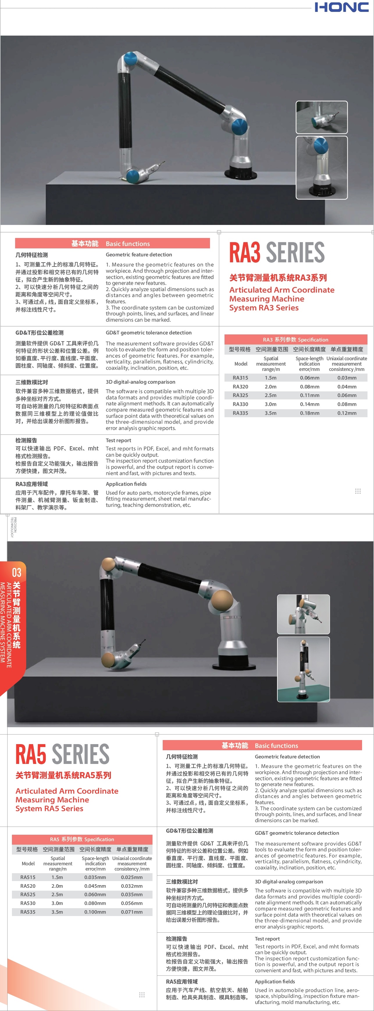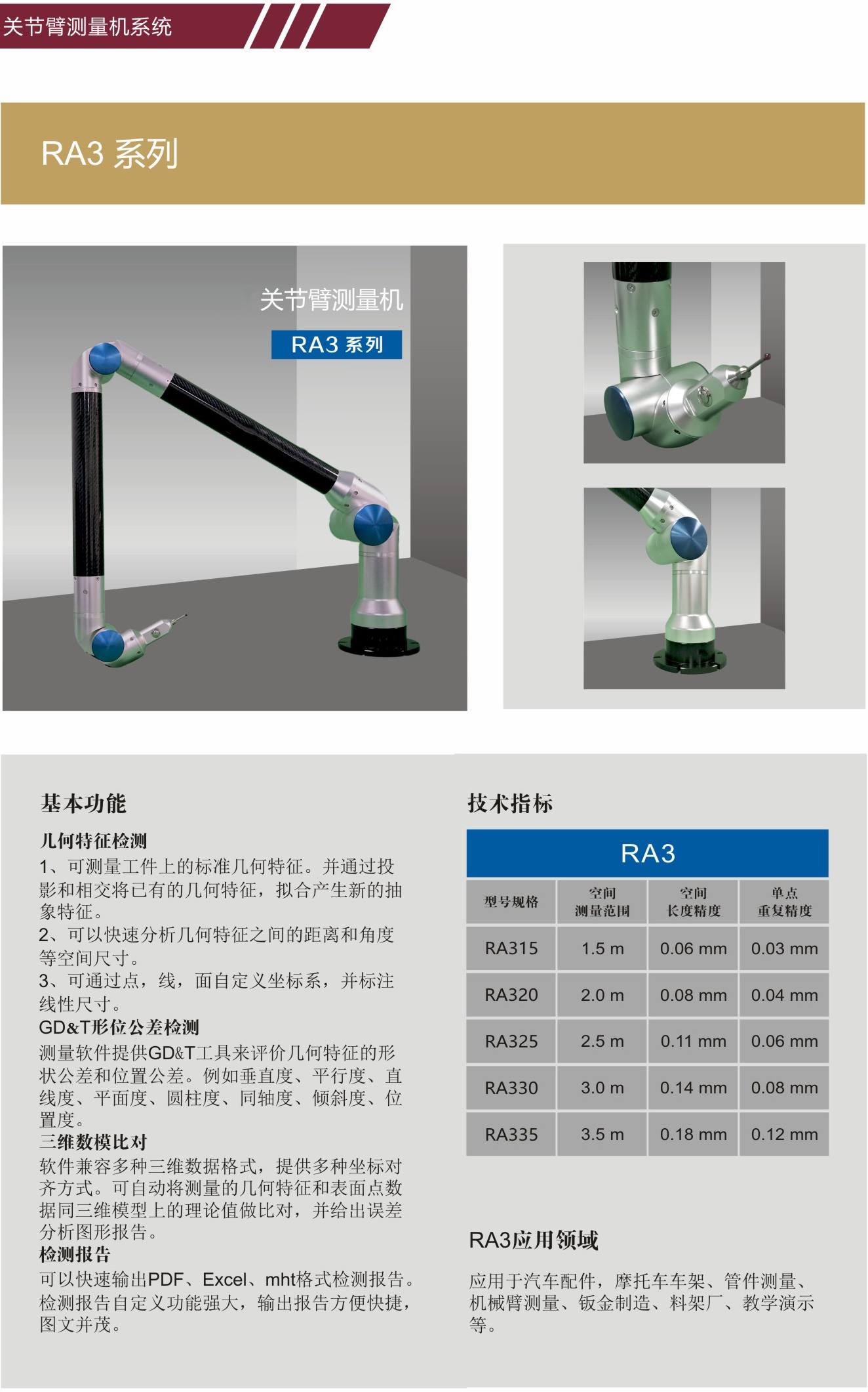 我司生產的關節(jié)臂坐標測量機是一種新型精密測量儀器,主要用于制造業(yè)的產品及零部件形體幾何參數(shù)測量。廣泛應用于汽車生產線、飛機維修、船舶制造、機車生產、模具制造等領域。適用于汽車生產線的在線檢測,重要部位安裝位置的檢測,逆向設計;航空工業(yè)飛機及飛行器行架的定位安裝,外形尺寸的檢測、維修,導軌檢測;船舶、艦艇設備定位安裝,大型工件的現(xiàn)場行位檢測;玩具、五金家電、運動器材的開發(fā)和逆向設計。