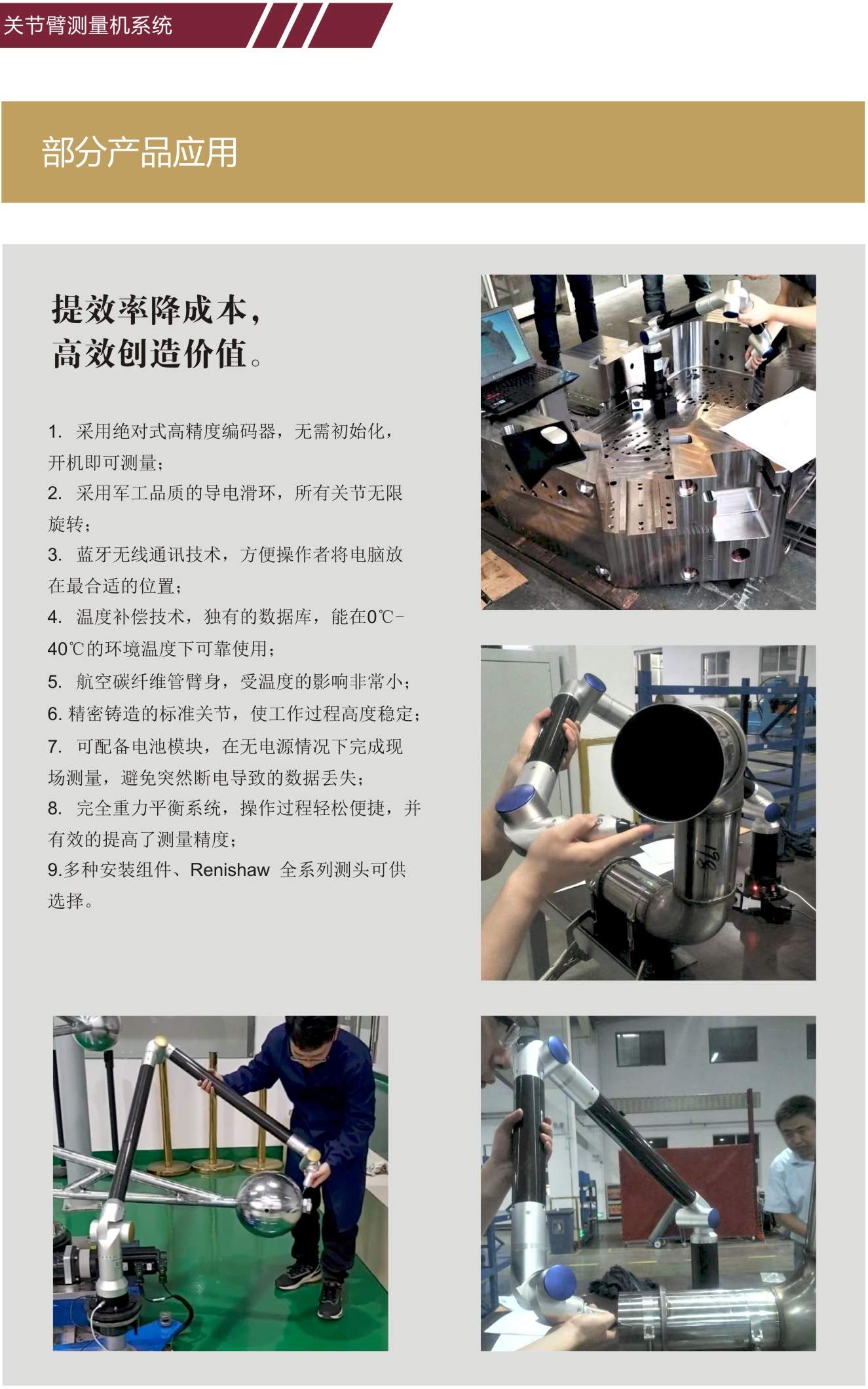 4)重大物體測量:對模具、大型機器、飛機、汽機車等大或重的產品或腔體的測量, 傳統(tǒng)設備非常困難,而采 用柔性坐標測量機則很方便;